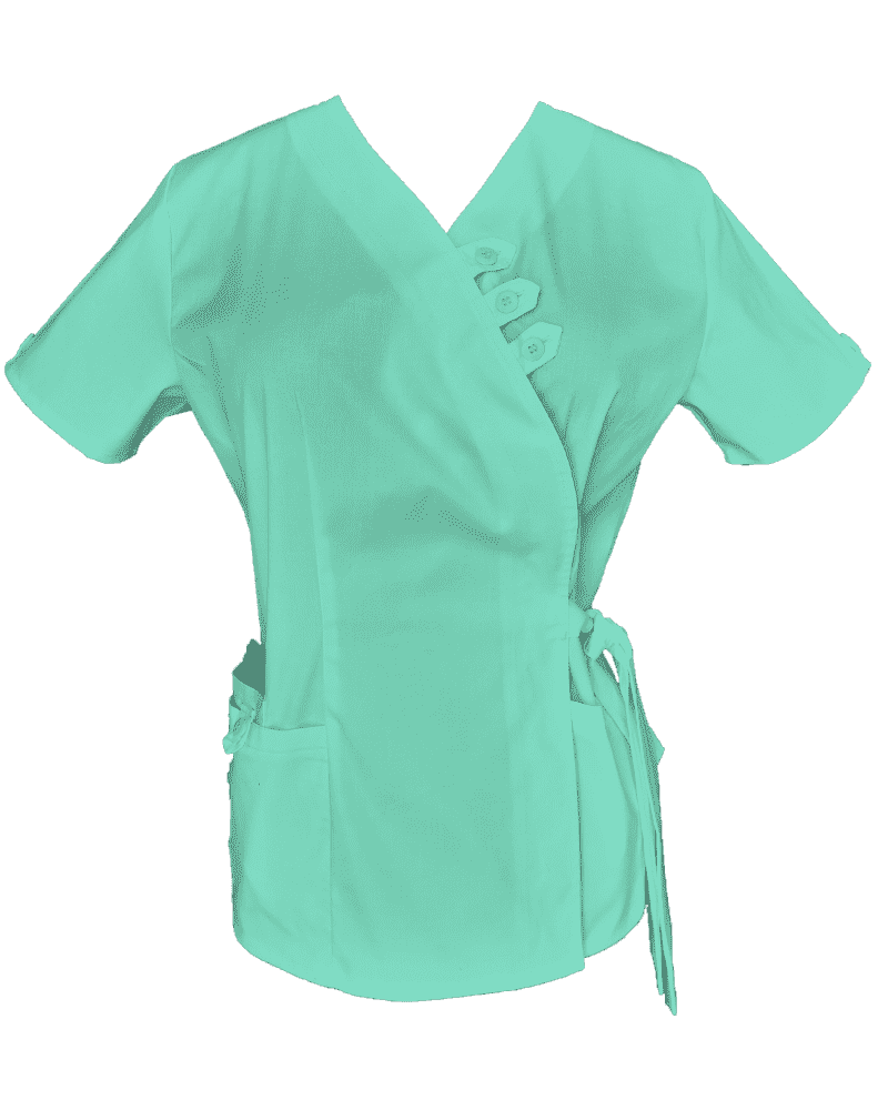 Costum Medical Pe Stil, Tip Kimono Acvamarin – Model Daria este realizat dintr-un material de calitate superioară, plăcut la atingere și foarte rezistent.