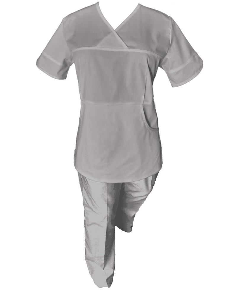 Costum Medical Pe Stil, Tip Kimono Argintiu – Model Daria este realizat dintr-un material de calitate superioară, plăcut la atingere și foarte rezistent.