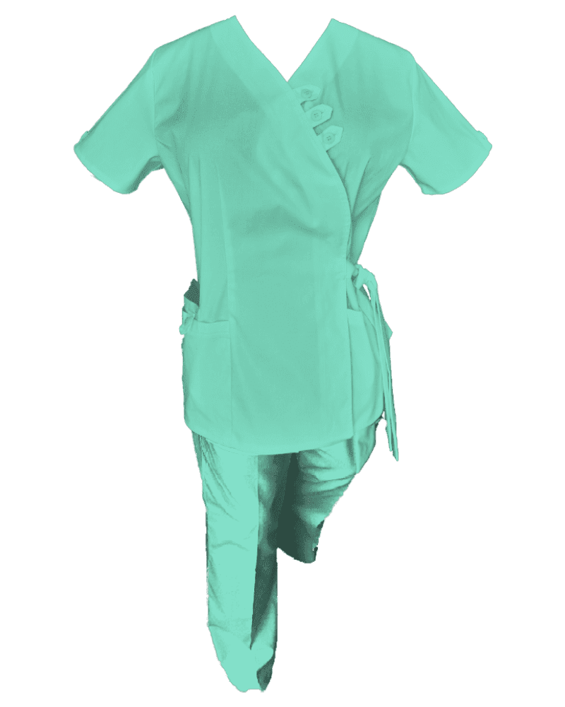 Costum Medical Pe Stil, Acvamarin – Model Marinela este realizat dintr-un material de calitate superioară, plăcut la atingere și foarte rezistent.