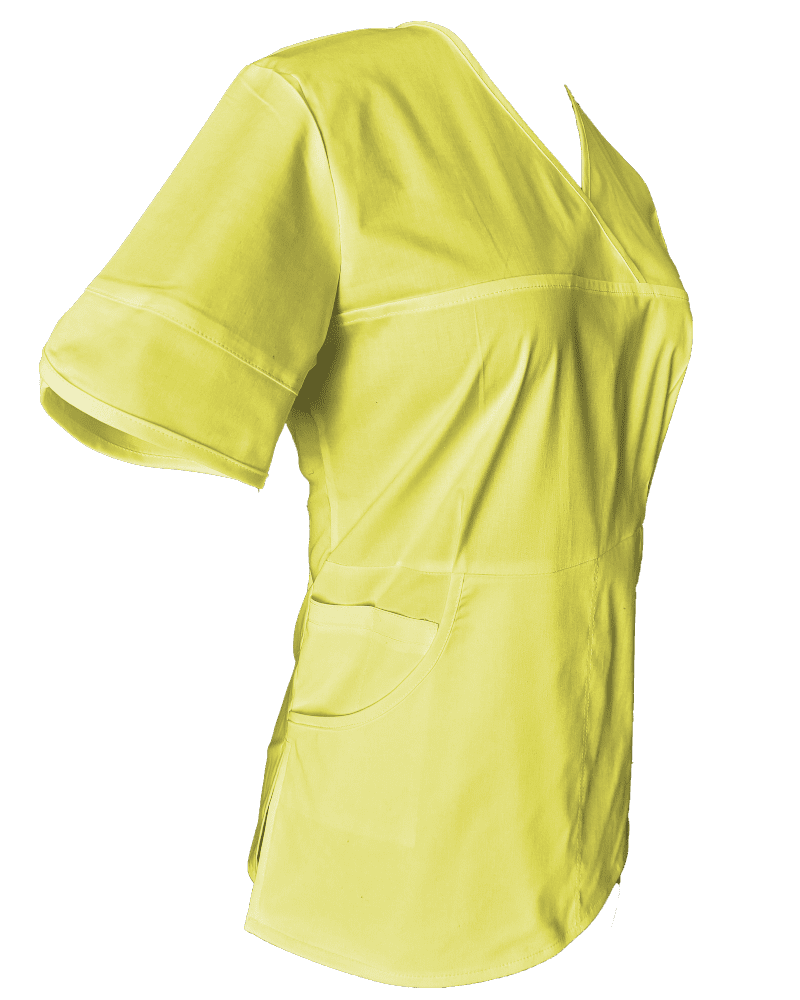 Halat Medical Pe Stil, Galben Deschis – Model Sanda este realizat dintr-un material de calitate superioară, plăcut la atingere și foarte rezistent.